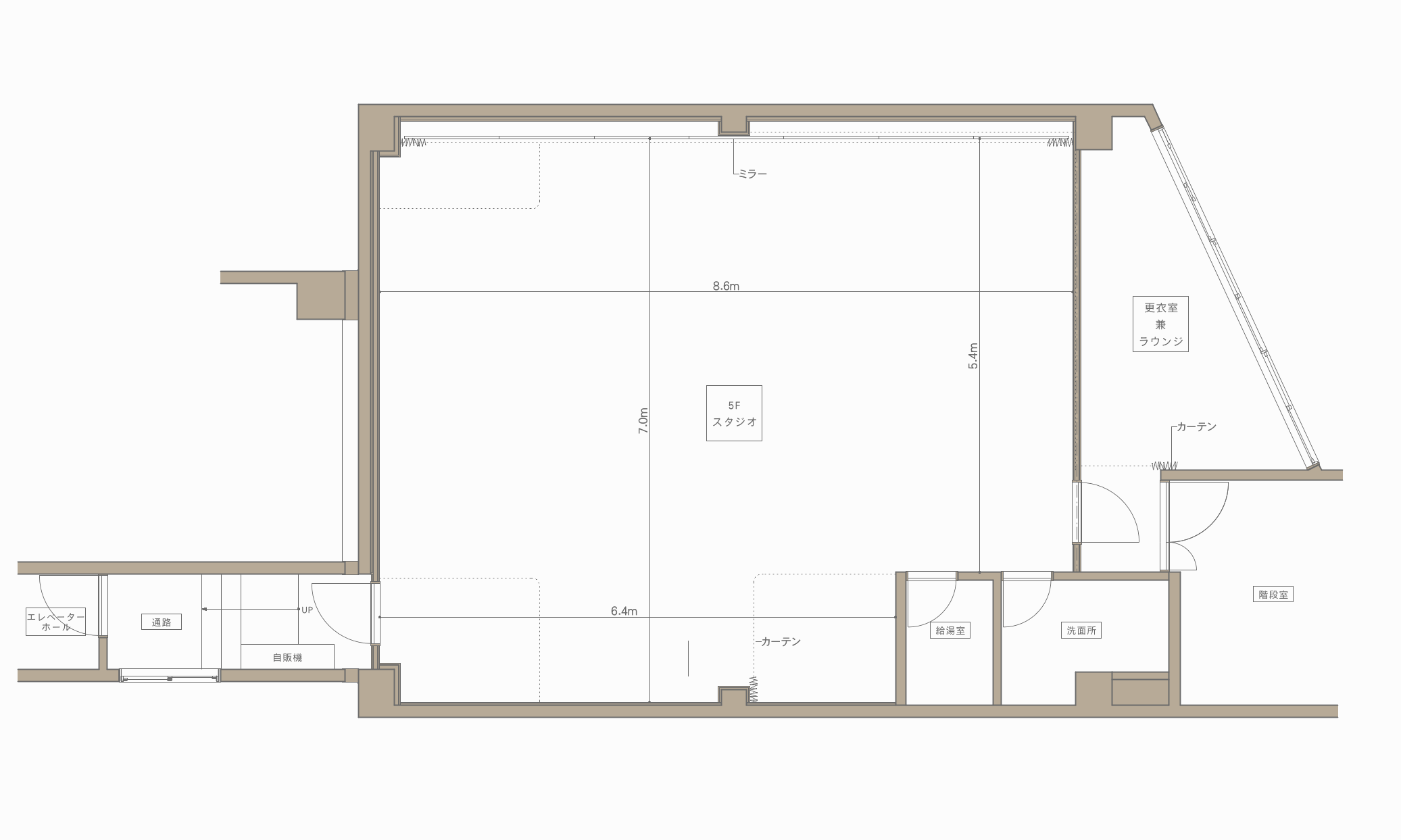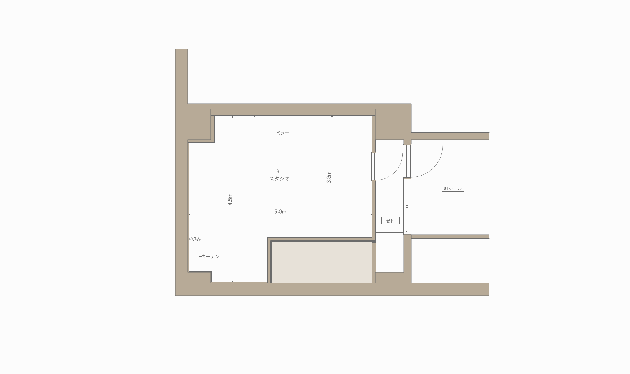 少人数でのご利用やプライベートレッスンに適した Bスタジオ(約19m2) の