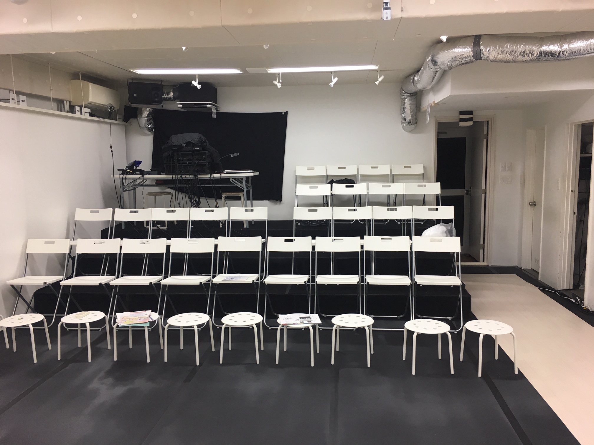 渋谷で「アトリエ公演」しませんか?!客席椅子増設!! 背もたれ付き椅子→40脚、丸椅子→10脚、桟敷用座布団→10枚Bスタジオのアトリエご利用時→背もたれ付き椅子を常時10脚ご用意(用途によっては10脚以上可) Aスタジオでは皆様にアトリエ公演としてご利用頂けるよう、照明・音響設備、様々なステージ形態を演出可能にする平台などもご用意しております。また、Bスタジオは小規模なアトリエ・ギャラリーとしてご利用頂けます。Aスタジオ(アトリエ利用)詳細Bスタジオ(アトリエ利用)詳細 *写真はAスタジオのアトリエ利用時です。 Facebook で共有 (新しいウィンドウで開きます) Facebook X で共有 (新しいウィンドウで開きます) X 友達にメールでリンクを送信 (新しいウィンドウで開きます) メールアドレス